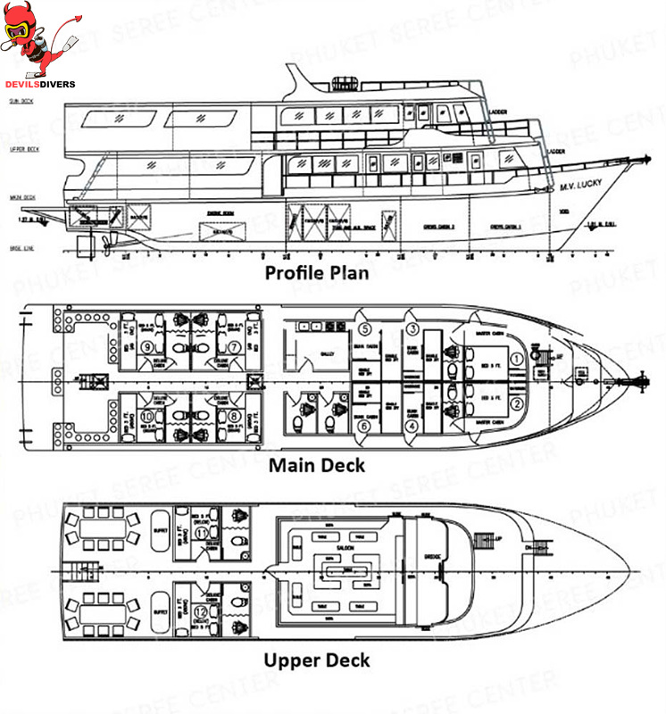MV LUCKY MARIN LIVEABORD Deck Plans