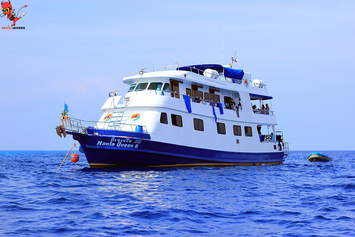 What to Expect Manta Queen 2 skips the Similan Islands and dives only the more advanced northern dive sites. The marine ecology in this northern area is amazing, colourful schools of fish, coral reefs, and endangered species that welcome divers like the Wh