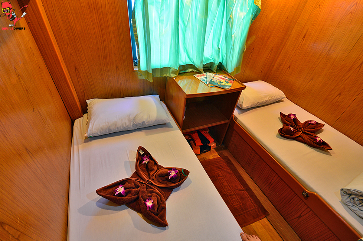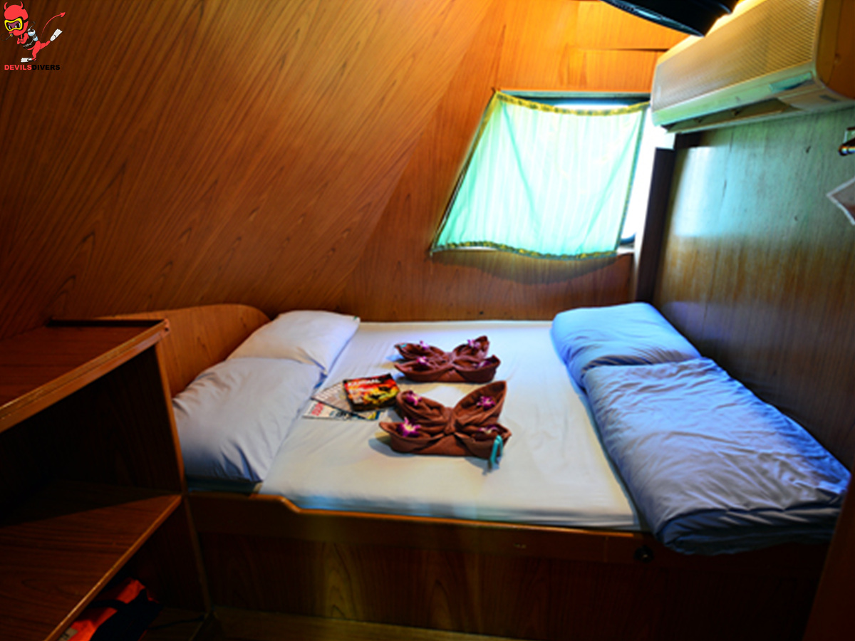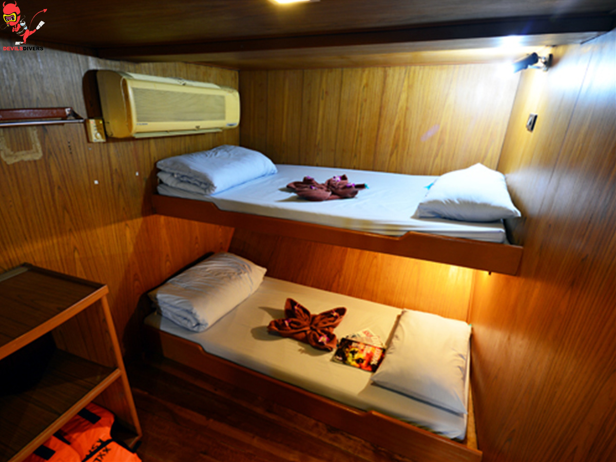 Comfortable air-conditioned cabin with 4 single bunk bed.