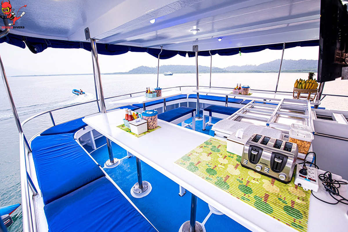 07.00 AM – Wake up call 07.30 AM – Dive/Safety briefing 07.45 AM – Dive briefing #1 “Koh Bon, West Ridge” 09.00 AM – Breakfast 11.30 AM – Dive briefing #2 “Koh Bon, West Ridge” 01.00 PM – Lunch 03.30 PM – Dive briefing #3 “Tachai Pinnacle” 05.00 PM – Snacks 06.15 PM – Dive briefing #4 “Tachai Beach” 08.00 PM – Dinner