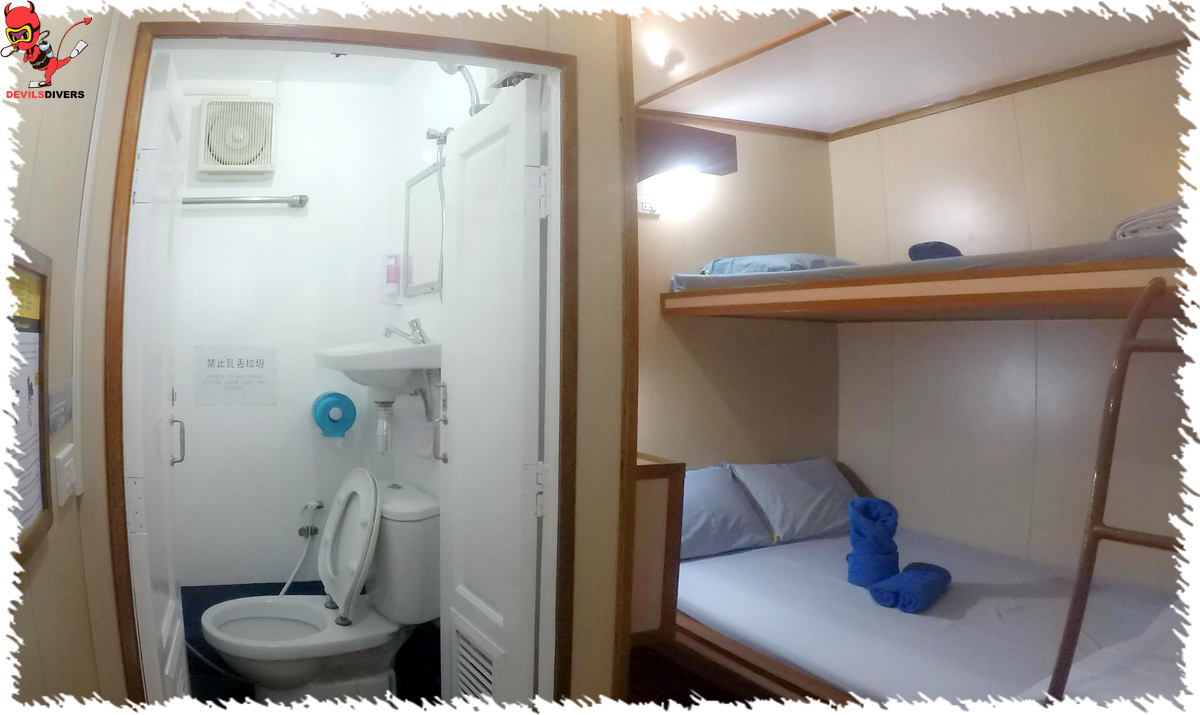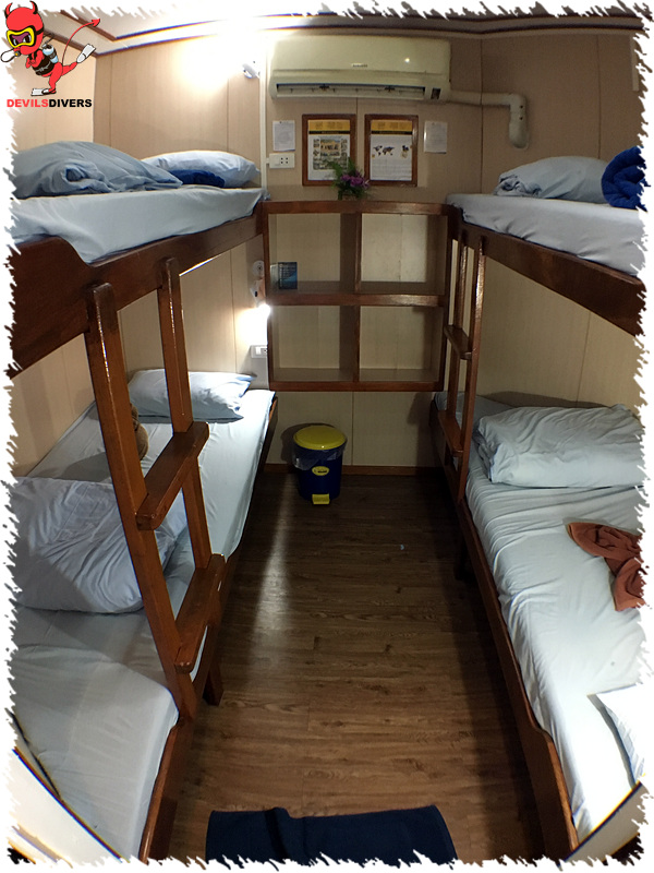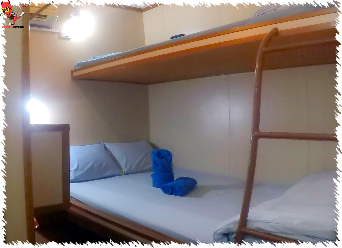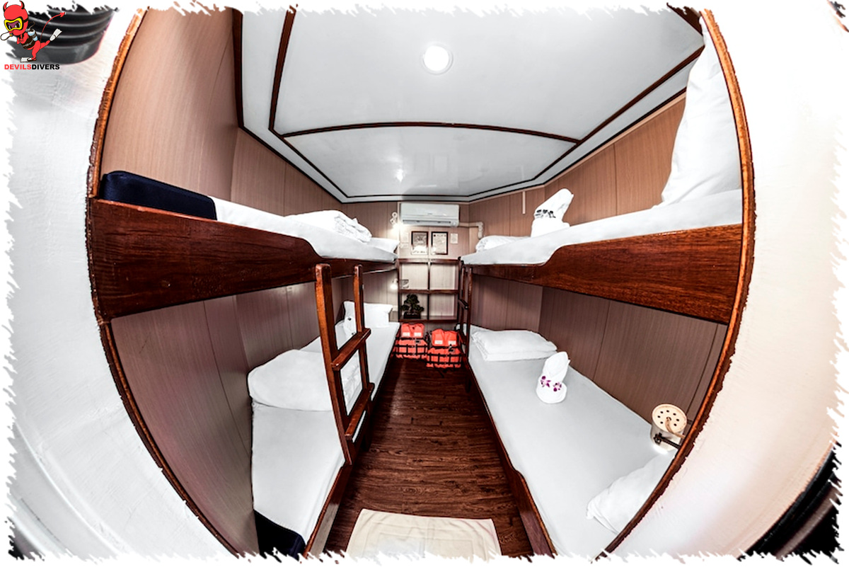 Comfortable air-conditioned cabin with 4 single bunk bed.