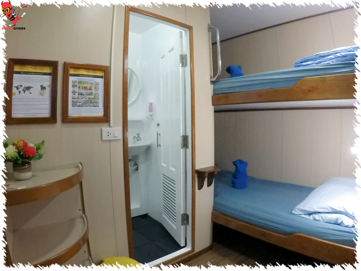 Comfortable air-conditioned cabin with 2 bunk beds Twin Cabin.