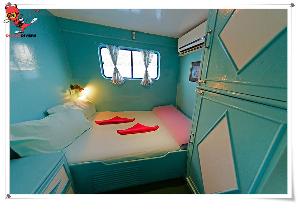 1 x Twin cabin with air conditioner and an opening sea view window. Twin cabins are fitted with curtains for each bed for guest's privacy.