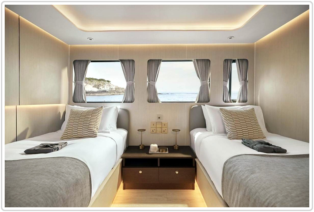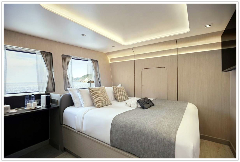 길이 52 미터 / 폭 9.5 미터 / 선체 알루미늄 / 속도 15~22노트 / 객실 10개 룸