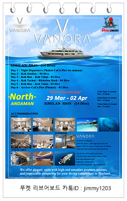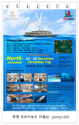 | 태국 스쿠버다이빙 No1 Vanora Liveaboard 시밀란 리브어보드 황금연휴 놓치지마세요 (0) | 2024.10.28 |
