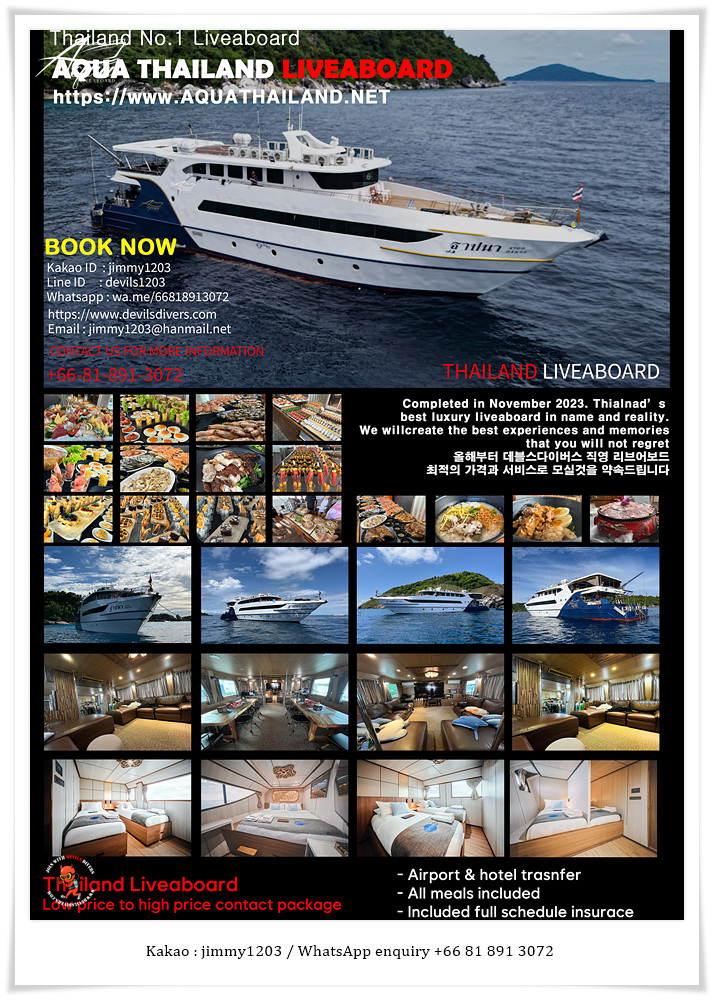 태국 스쿠버다이빙 리브어보드 아쿠아 리브어보드 & 바노라 황금연휴 스페셜트립 데블스다이버스 한국인 독점 계약
